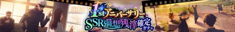 呪術廻戦ファントムパレード(ファンパレ)の「1stアニバーサリーSSR廻想残滓確定ガチャ」開催予告!のお知らせを紹介。