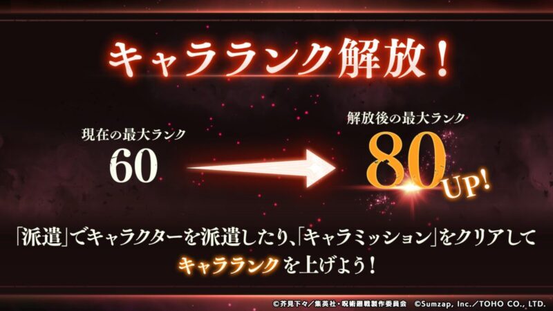 2/28(金)メンテナンス終了後より、各キャラクターのキャラランクの上限が60から80に引き上げられます!