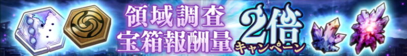 開催期間中、領域調査のバトルクリア時に獲得できる宝箱報酬の獲得量が通常の2倍になるお得なキャンペーンとなります。