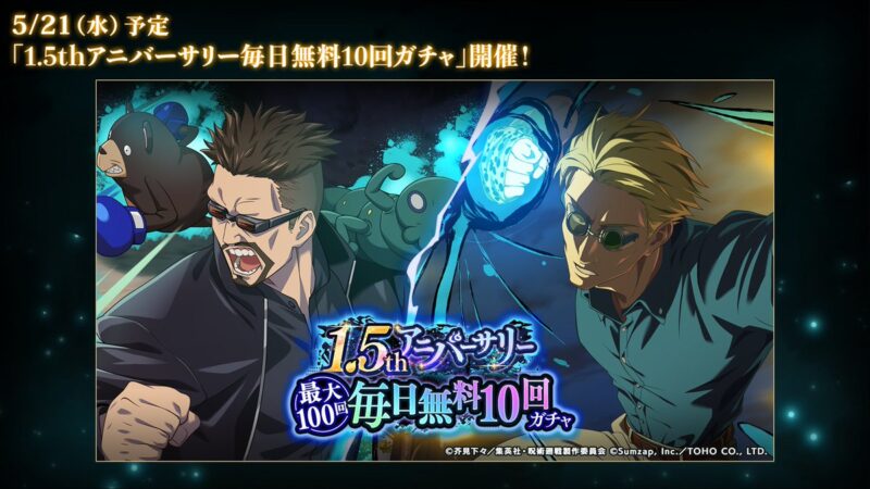 呪術廻戦ファントムパレード(ファンパレ)の「1.5thアニバーサリー毎日無料10回ガチャ」開催中!のお知らせを紹介。