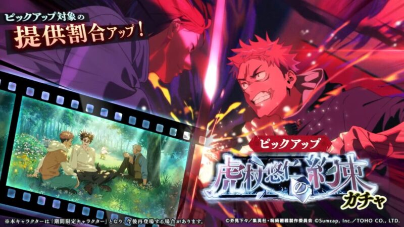 2026/1/9(金)1:30より、期間限定SSRキャラクター「[託された一命]虎杖悠仁」と、SSR廻想残滓「名もなき春」が新登場するピックアップガチャを開催中です!