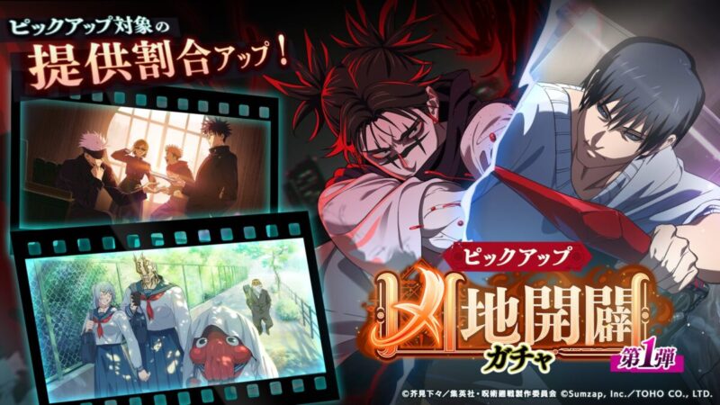 呪術廻戦ファントムパレード(ファンパレ)の「凶地開闢ガチャ-第1弾-」開催予告!のお知らせを紹介。