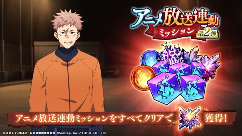 呪術廻戦ファントムパレード(ファンパレ)の「アニメ放送連動ミッション第2弾」開催予告!のお知らせを紹介。