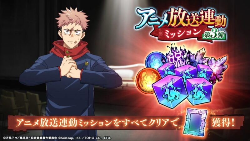 呪術廻戦ファントムパレード(ファンパレ)の「アニメ放送連動ミッション第3弾」開催予告!のお知らせを紹介。