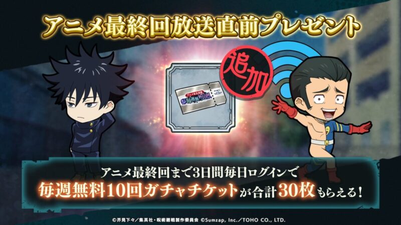 呪術廻戦ファントムパレード(ファンパレ)のアニメ最終回放送直前プレゼント開催中!のお知らせを紹介。