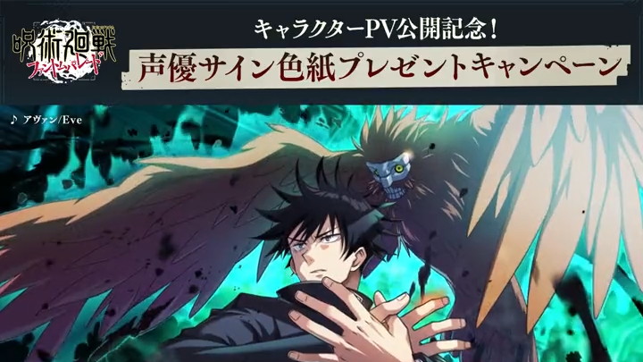 呪術廻戦のアプリ:ファンパレ(ファントムパレード)のプレゼントキャンペーンを紹介。伏黒恵役の内田雄馬さんサイン色紙が当たります。