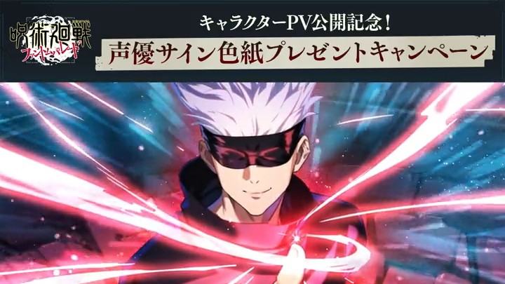 呪術廻戦のアプリ:ファンパレ(ファントムパレード)のプレゼントキャンペーンを紹介。五条悟役の中村悠一さんサイン色紙が当たります。