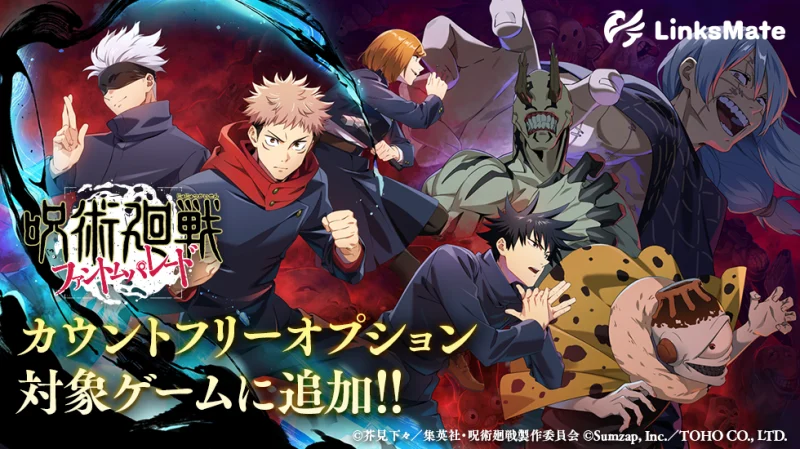 本日(2024年4月4日)より「呪術廻戦 ファントムパレード」がカウントフリーオプション対象コンテンツに追加されました。詳しくはこちら↓https://t.co/iOK0i47jBU#linksmate #リンクスメイト #呪術廻戦 #ファンパレ pic.twitter.com/7qp6dMph0D