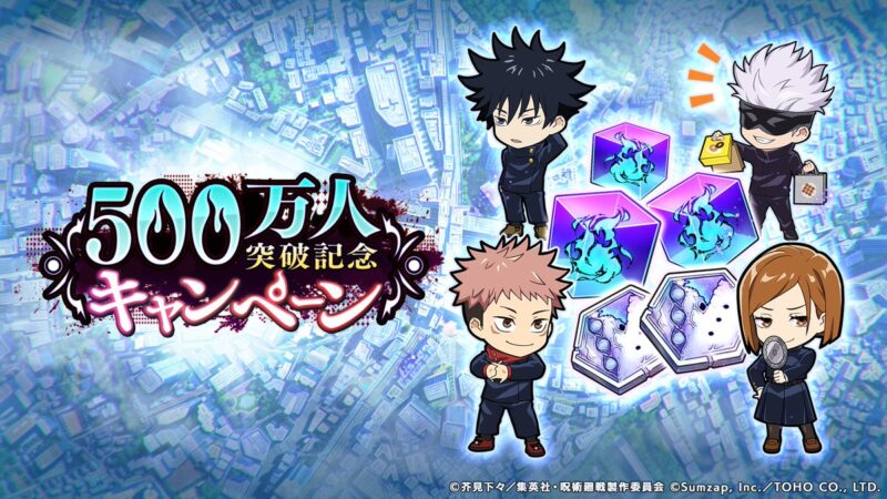 呪術廻戦ファントムパレード(ファンパレ)の500万人突破記念キャンペーン第2弾開催&幻影メダル交換所のラインナップ追加予告!のお知らせを紹介。