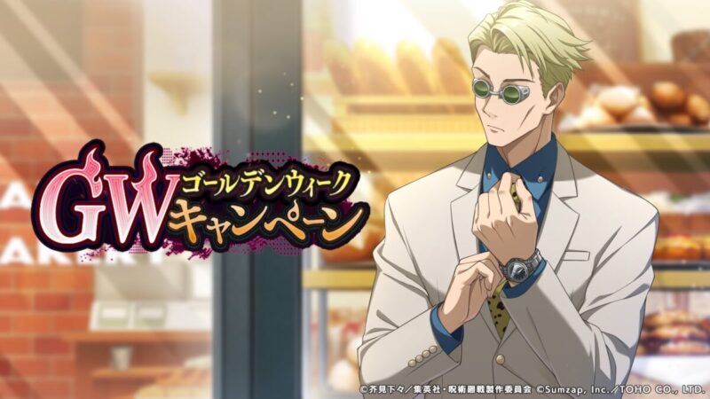 呪術廻戦ファントムパレード(ファンパレ)のゴールデンウィークキャンペーン開催予告!のお知らせを紹介。