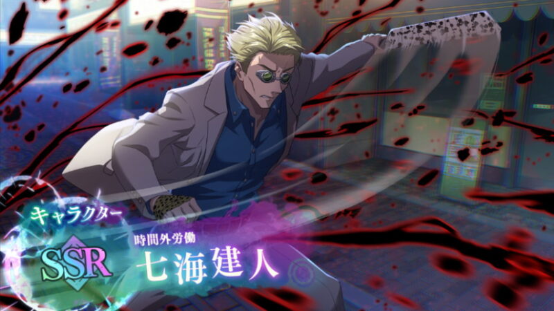 呪術廻戦ファントムパレード(ファンパレ)のSSR[時間外労働]七海建人が新登場!「雨音と足音ガチャ」開催予告!のお知らせを紹介。