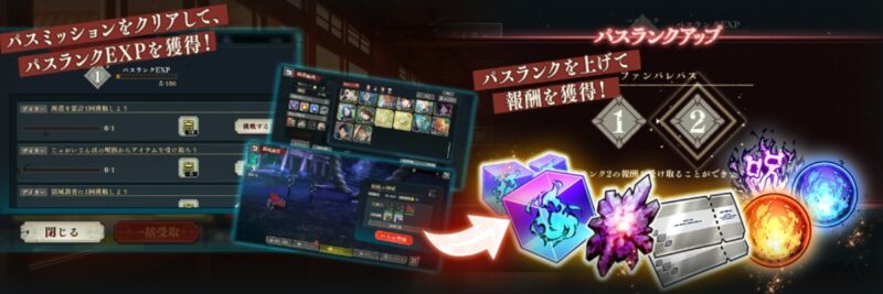 「ファンパレパス」とは、毎月期間中に開催されるパスミッションをクリアしてパスランクEXPを獲得し、「パスランク」を上げることで、ランクに応じた報酬を獲得することができる機能です。