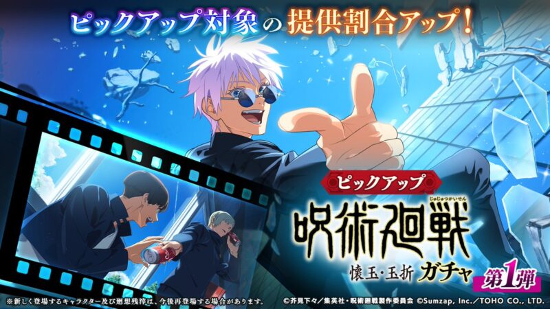 5/21(火)15:00より、SSRキャラクター「[蒼き最強]五条悟」と、SSR廻想残滓「とりあえずコーラ」が新登場するピックアップガチャを開催いたします!