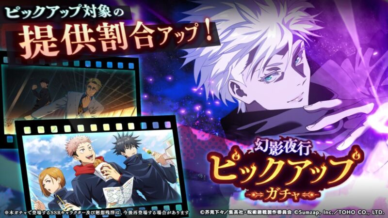 呪術廻戦ファントムパレード(ファンパレ)の「ピックアップガチャ」開催予告!のお知らせを紹介。