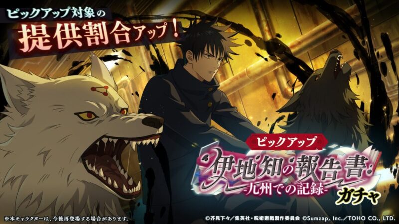 呪術廻戦ファントムパレード(ファンパレ)のSSR[対の絆]伏黒恵が新登場!「伊地知の報告書-九州での記録-ガチャ」開催予告!のお知らせを紹介。
