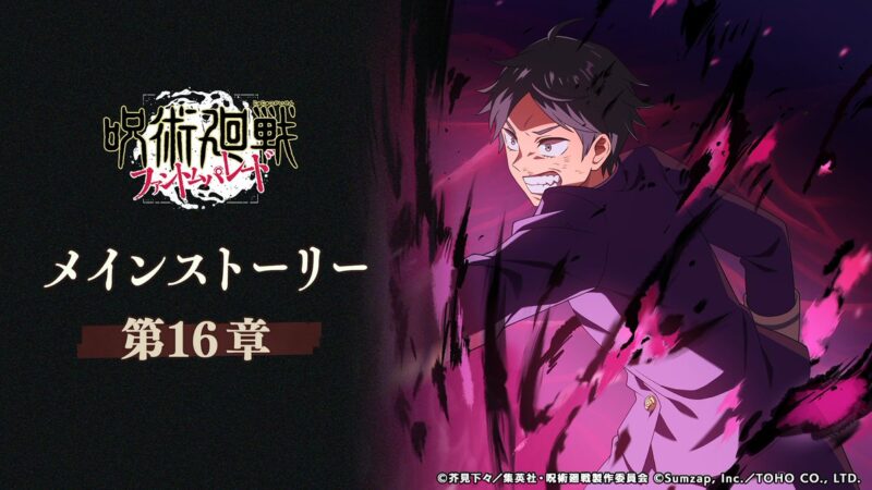 呪術廻戦ファントムパレード(ファンパレ)のメインストーリー第16章公開!メインクエスト消費AP0キャンペーン開催中!のお知らせを紹介。