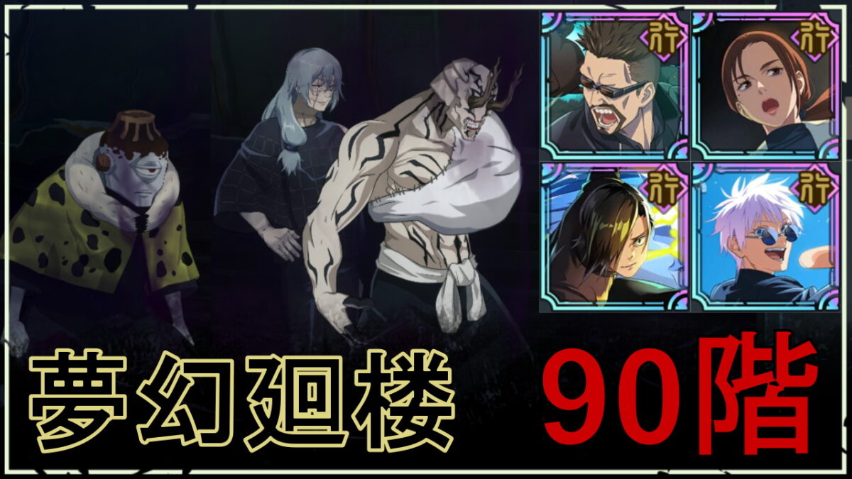 呪術廻戦ファントムパレード(ファンパレ)の夢幻廻楼(無限回廊)90階の攻略とおすすめキャラを紹介。夢幻廻楼90階の基本情報や攻略のコツ、おすすめパーティ編成をまとめています。