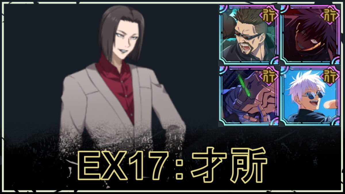呪術廻戦ファントムパレード(ファンパレ)のストーリーEX17:才所の攻略方法を紹介。ストーリーEX17の攻略パーティや攻略のコツ、おすすめキャラをまとめています。