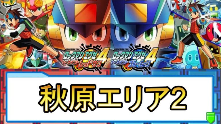 ロックマンエグゼ4(レッドサン/ブルームーン)の秋原エリア2の攻略マップと出現する敵を紹介。秋原エリア2のマップ画像やゲートのコード解除方法、ミステリーデータの場所と中身、出現するウイルスと属性をまとめています。