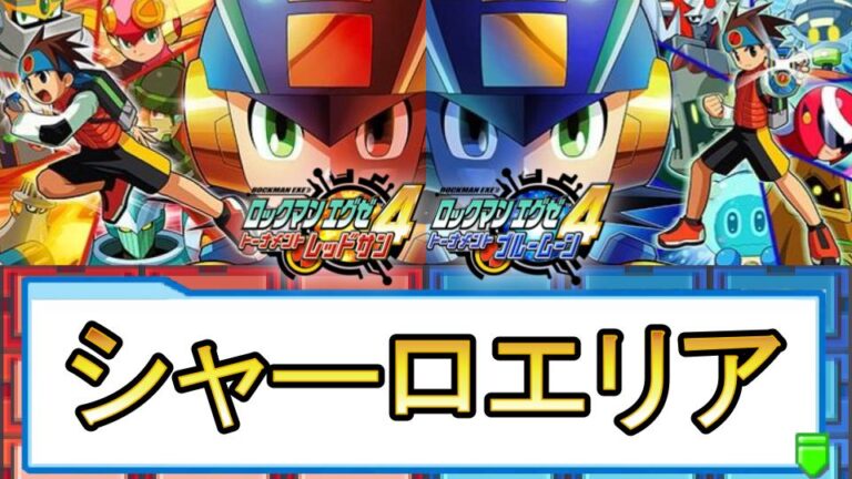 ロックマンエグゼ4(レッドサン/ブルームーン)のシャーロエリアの攻略マップと出現する敵を紹介。シャーロエリアのマップ画像やゲートのコード解除方法、ミステリーデータの場所と中身、出現するウイルスと属性をまとめています。