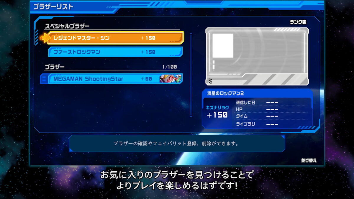 ブラザーは、対戦後に各タイトルごと100人まで一時保存できます。