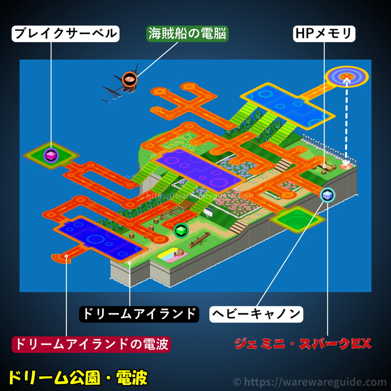 流星のロックマン1(ペガサス/レオ/ドラゴン)のドリーム公園の電波の攻略マップと出現する敵を紹介。ドリーム公園の電波のマップ画像やミステリーデータの場所と中身、出現するウイルスと属性をまとめています。