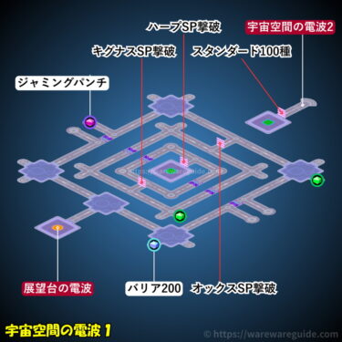 流星のロックマン1(ペガサス/レオ/ドラゴン)のステーションの電脳の攻略マップと出現する敵を紹介。ステーションの電脳のマップ画像やミステリーデータの場所と中身、出現するウイルスと属性をまとめています。ステーションの電脳のマップエリア1エリア[…]