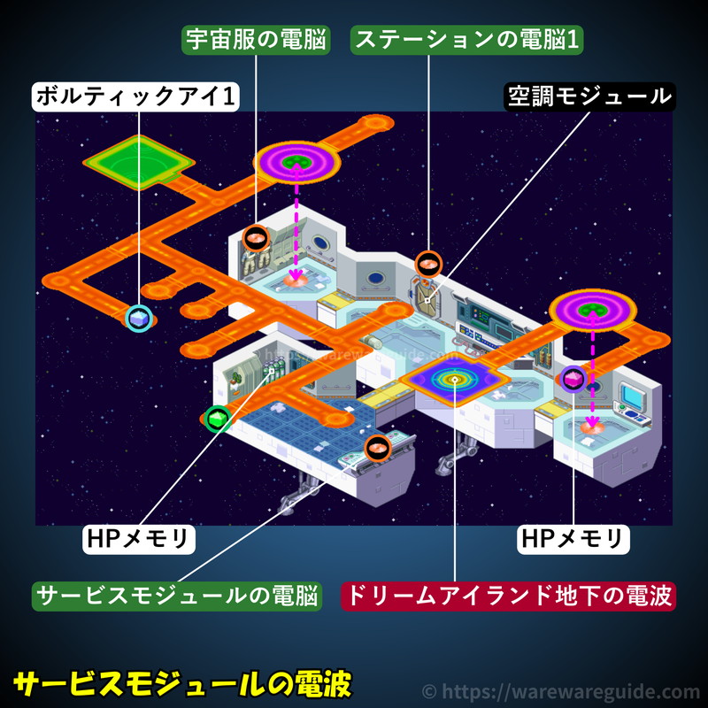 流星のロックマン1(ペガサス/レオ/ドラゴン)のサービスモジュールの電波の攻略マップと出現する敵を紹介。サービスモジュールの電波のマップ画像やミステリーデータの場所と中身、出現するウイルスと属性をまとめています。