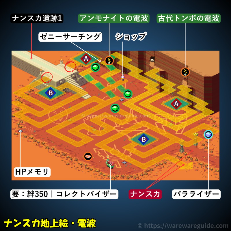 流星のロックマン2(ベルセルク/シノビ/ダイナソー)のナンスカ地上絵の電波の攻略マップと出現する敵を紹介。ナンスカ地上絵の電波のマップ画像やミステリーデータの場所と中身、出現するウイルスと属性をまとめています。