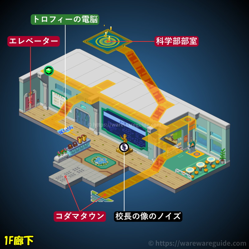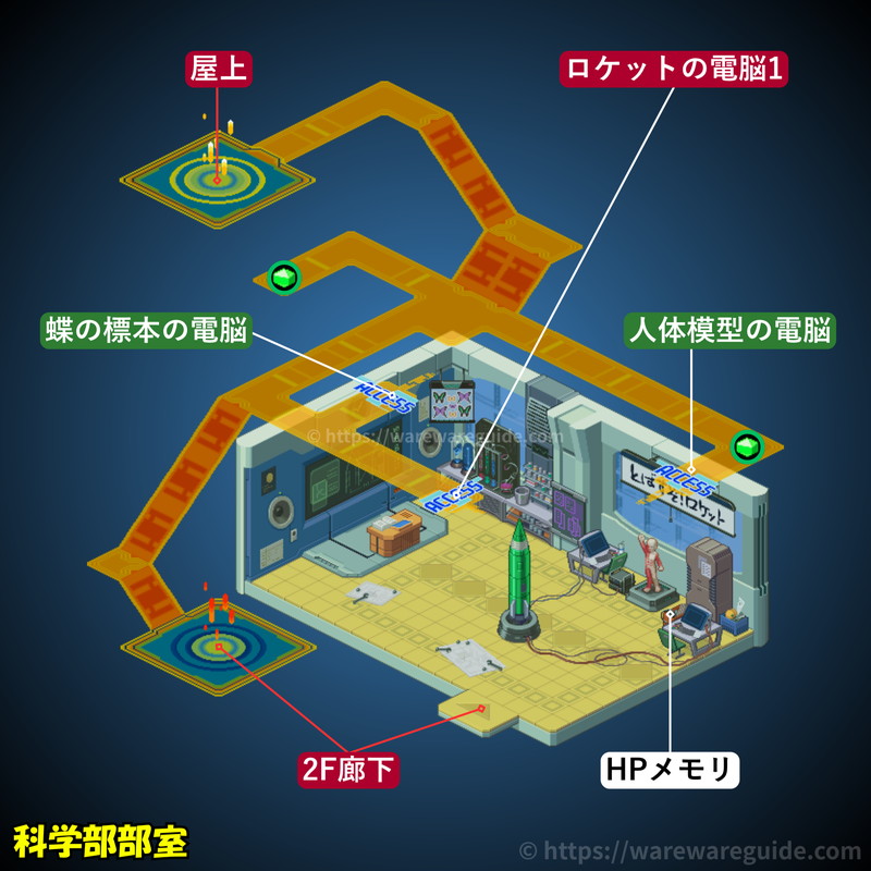 | コダマタウン | 1F廊下 | 科学部部室 | 屋上 |