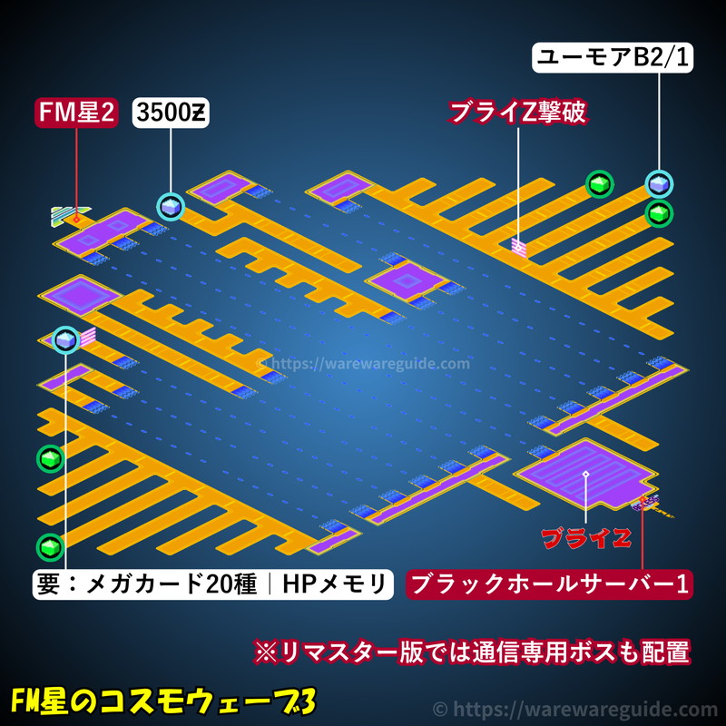 流星のロックマン3(ブラックエース/レッドジョーカー)の環境システムの電脳の攻略マップと出現する敵を紹介。環境システムの電脳のマップ画像やミステリーデータの場所と中身、出現するウイルスと属性をまとめています。 環境システムの電脳のマップ […]