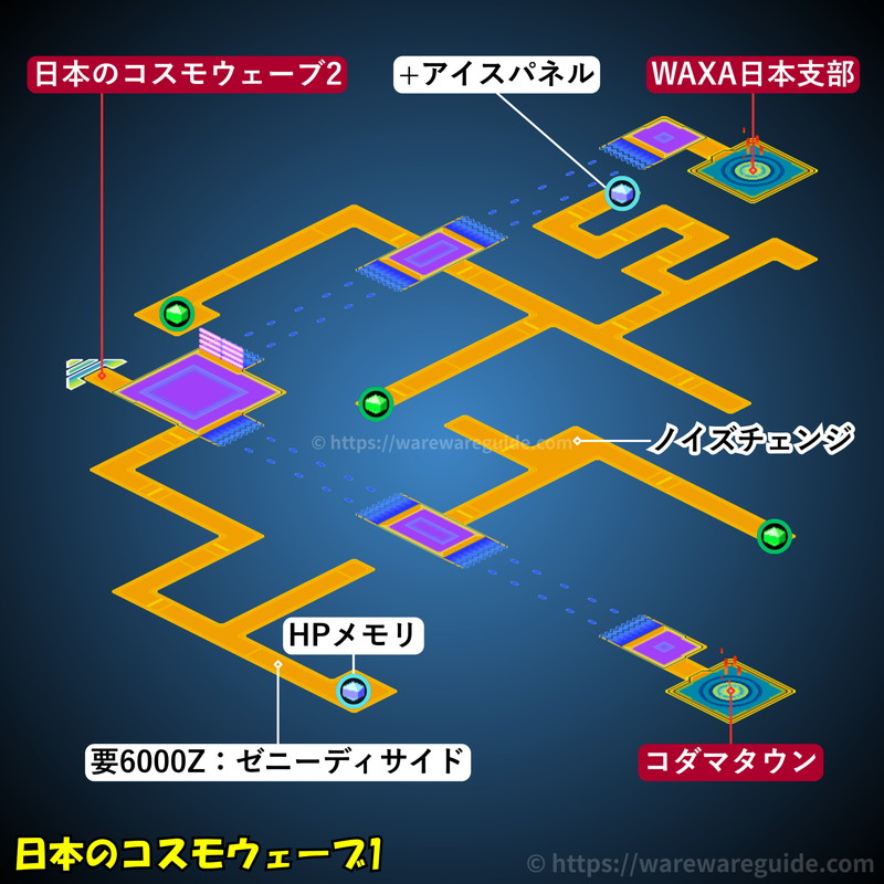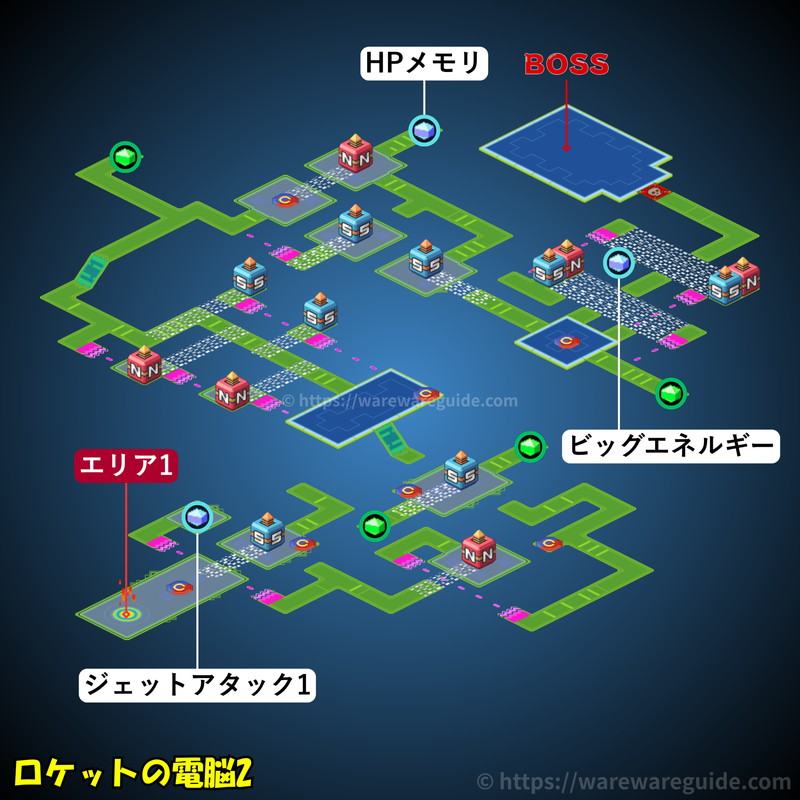 流星のロックマン3(ブラックエース/レッドジョーカー)のロケットの電脳の攻略マップと出現する敵を紹介。ロケットの電脳のマップ画像やミステリーデータの場所と中身、出現するウイルスと属性をまとめています。 ロケットの電脳のマップ […]