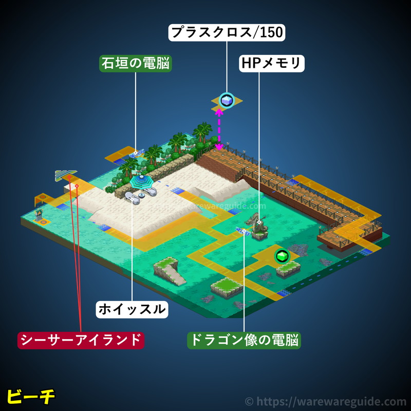 流星のロックマン3(ブラックエース/レッドジョーカー)のビーチの攻略マップと出現する敵を紹介。ビーチのマップ画像やミステリーデータの場所と中身、出現するウイルスと属性をまとめています。